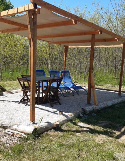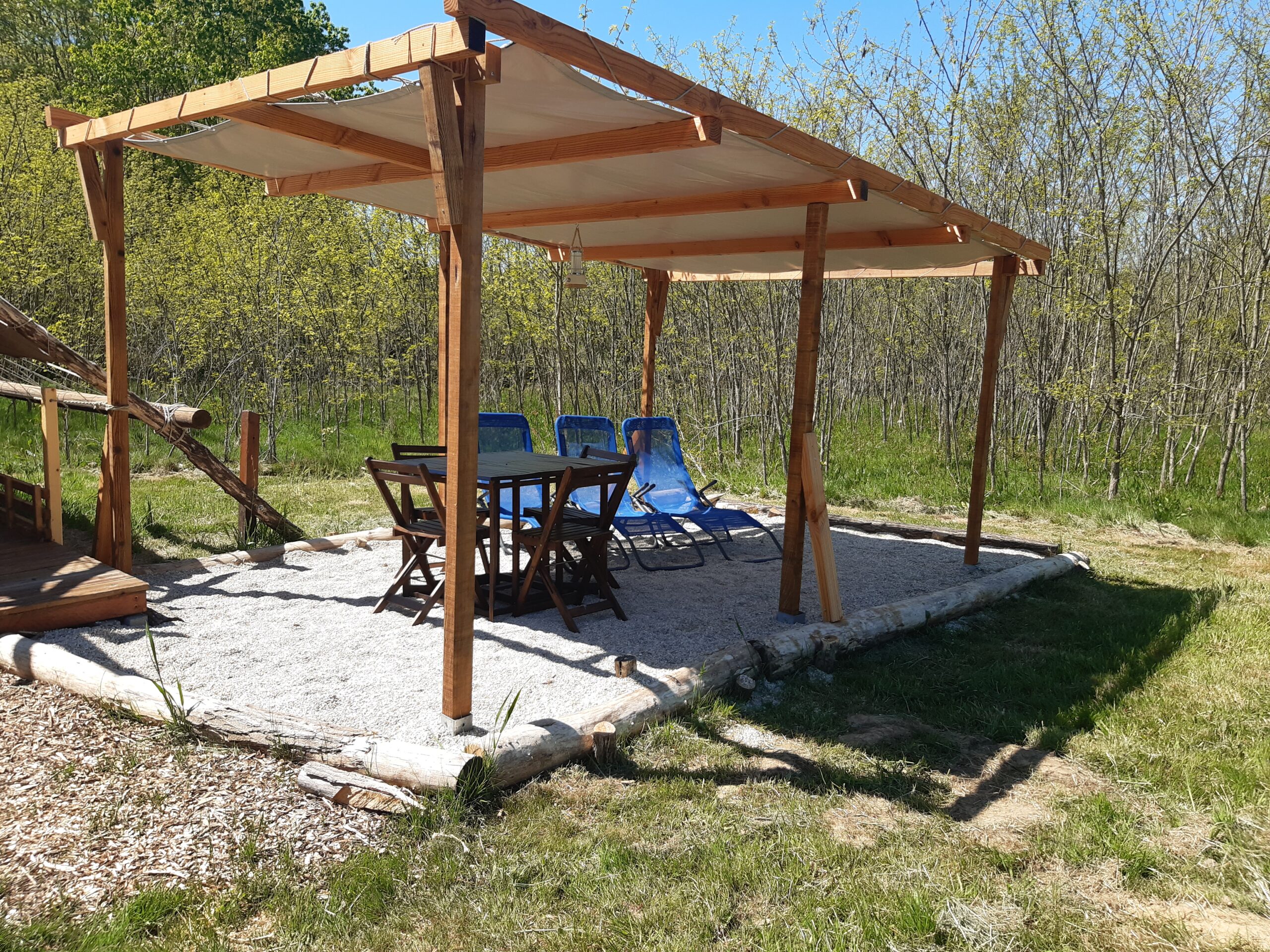 La tente est située près d’une mare avec accès sécurisé pour les enfants. Il est possible de voir et câliner les brebis Pauline Patty et Tutu qui se feront une joie de vous accueillir. Vous pourrez également, dans la mesure du possible, participer si vous le souhaitez, aux récoltes du potager. Nous serons ravis de partager avec vous notre mode de vie proche de la nature.
